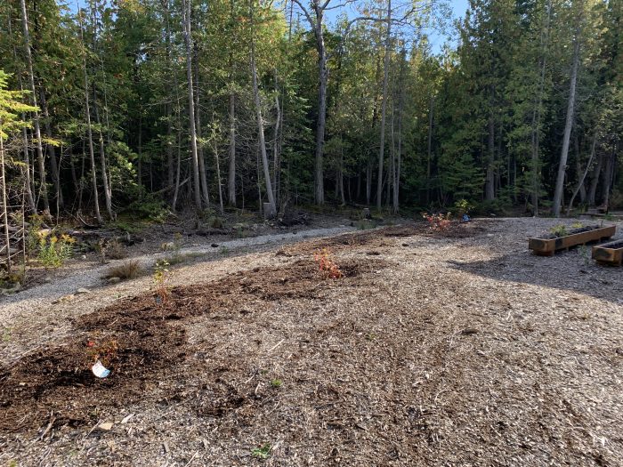 We’ve also got volunteer red raspberries and sumac popping up along the east-facing edge of the clearing – perfect for adding fiery fall colour and a bit of wild abundance right in view of our front window. We managed to get a few strawberries and blueberries this year but I’m sure it will be a number of years before we get significant harvests – assuming, of course, I get to them before the birds and other ravenous creatures do.