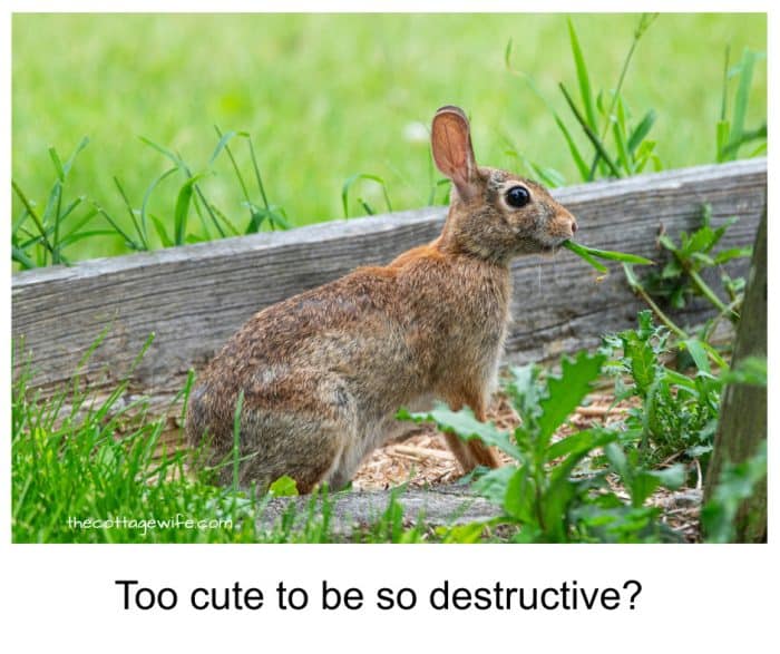 I’m getting used to sharing a little with nature, but our local rabbits have crossed the line. They don’t even have the decency to eat what they cut down! My poor New Jersey tea plants and roses are already half-munched; they were not about to get their razor sharp teeth on my new berries.